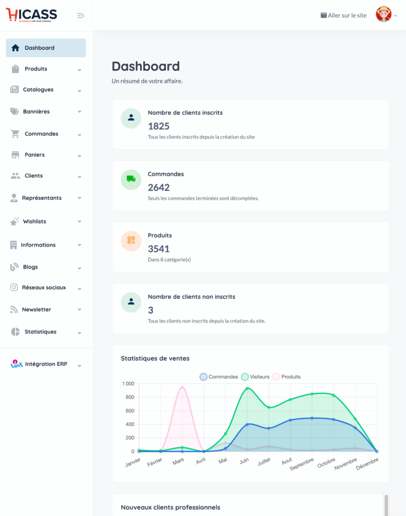 Si votre activité nécessite une plateforme flexible capable de se connecter à un ERP ou de gérer des cas spécifiques : HICASS est fait pour vous.