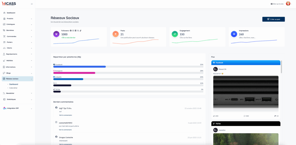 HICASS réunit e-commerce, voyages, CRM, newsletters, gestion des réseaux sociaux et analytics dans une solution élégante, moderne et ultra performante — prête à booster votre organisation.